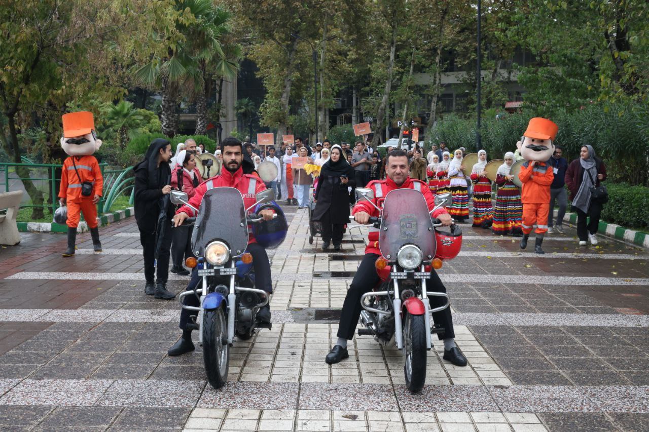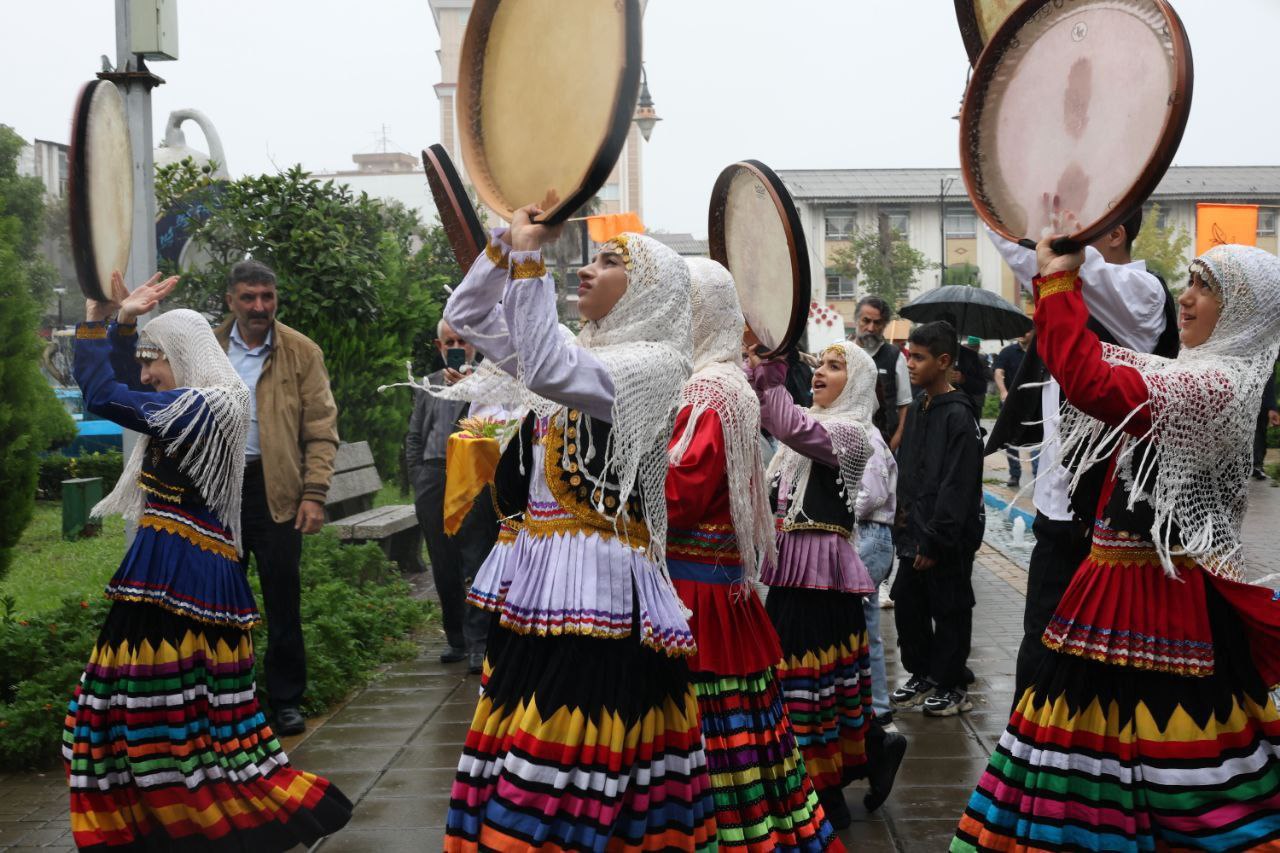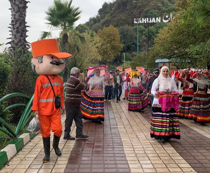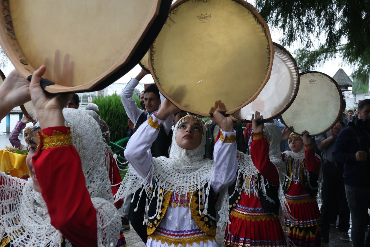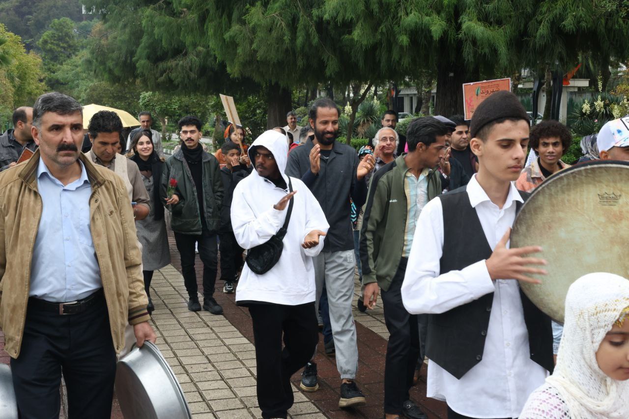 گروه های نمایشی و مسئولان حاضر در این مراسم، پس از گلباران مزار شهدای گمنام در زیر بارش شدید باران رحمت الهی به صورت کاروان پیاده به سمت باغ ملی محل اجرای داوری بخش مسابقه جشنواره حرکت کردند.