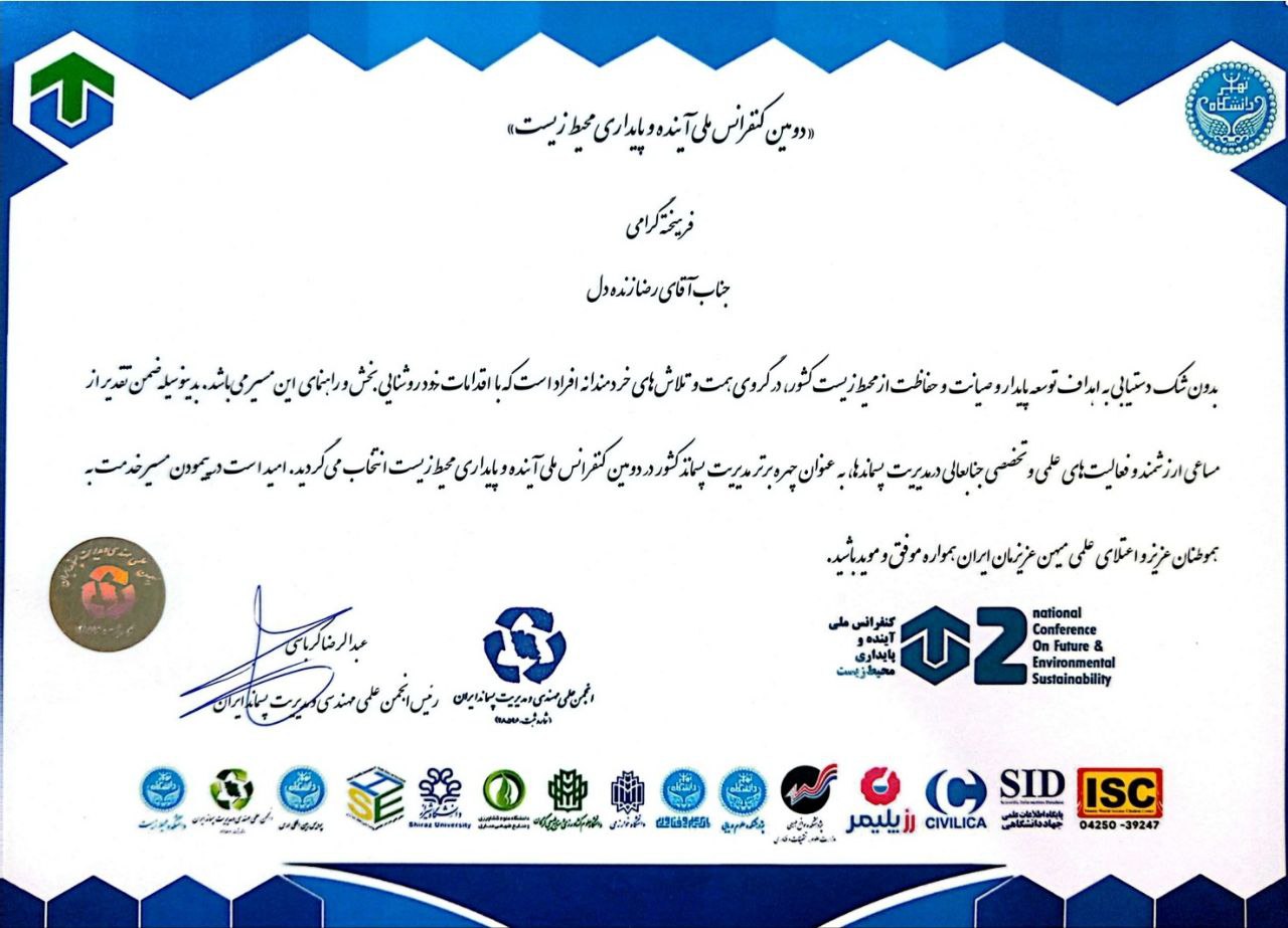 به گزارش گیل و دیلم به نقل از اداره ارتباطات و امور بین الملل شهرداری لاهیجان، در دومین کنفرانس ملی آینده و پایداری محیط زیست کشور، از سوی عبدالرضا کرباسی رییس انجمن علمی مهندسی و مدیریت پسماند ایران، رضا زنده دل شهردار لاهیجان به دلیل فعالیت های علمی و تخصصی در مدیریت پسماند ها به عنوان چهره برتر مدیریت پسماند کشور انتخاب شد.